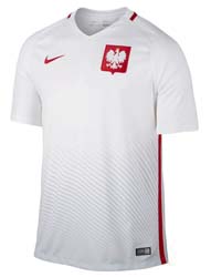 Die neuen Polen-Trikots zur EM 2016 kommen wieder von nike. Das Heimtrikot ist weiß mit roten Streifen an der Seitennaht. Das Besondere am neuen Polen-Trikot sind die grauen Streifen, die von unten her nach oben immer dünner werden. Diese Streifen sind von den Flügeln eines Adlers inspiriert wurden. Die Flügel eines Adlers sind das Symbol von Polens Fußball-Nationalmannschaft. Das neue Polen EM 2016 Auswärts-Trikot, das im gleichen Design wie das Heimtrikot gehalten ist, weist einzigartige diagonale Streifen auf der Vorderseite auf.