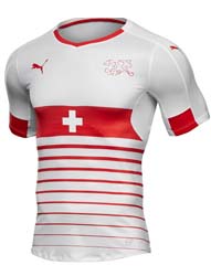 Die bisher drei Schweizer EM-Teilnahmen endeten dabei stets frühzeitig. Noch nie kam das Land über die Vorrunde hinaus. Dies änderte sich auch auf heimischem Boden 2008 nicht. Immerhin konnte man im letzten Gruppenspiel gegen Portugal aber den ersten Sieg bei einer Europameisterschaft überhaupt einfahren. Der 2:0-Sieg war zudem das erste EM-Spiel, in dem die Schweiz mehr als ein Tor erzielte. Errungen wurde dieser historische Sieg in Puma-Trikots. Der Ausrüster setzte dabei auf die Nationalfarben Rot und Weiß: Das Trikot war vorwiegend Rot, allerdings mit einer weißen Trikotnummer auf der Vorderseite versehen. Hinzu kamen weiße Hosen mit roten Nummern.