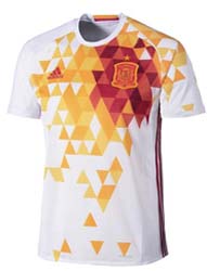 Das Spanien Heimtrikot zur EM 2016 wird eher klassisch daherkommen: rot mit Akzenten der Farben blau und gelb. Während das adidas-log und das spanische Verbandszeichen in gelb gehalten sind, gibt es die drei Adidas-Steifen an der Seite ebenfalls in gelb. Die Ärmel haben einen blau-schwarzen-Abschnitt. Neue Wege geht Spanien beim Auswärtstrikot! Es wird weiß sein und rote und gelbe Dreiecke zieren. Sehr lebhaft! Seit Anfang Januar 2016 kann man das neue Spanien EM-Trikot auch kaufen!
