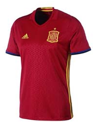 Gleich bei den zweiten Europameisterschaft 1964 gewann die spanische Auswahl einst den Titel. Danach allerdings versank die Nationalmannschaft zunächst etwas in der Versenkung. Erst Mitte der 1980er Jahre kehrte sie in die Weltspitze zurück. Bei großen Turnieren war ihr das Glück aber nie hold. So kam Spanien zwischen 1986 und 2006 zwanzig Jahre lang nicht über das Viertelfinale hinaus. Dieser Fluch wurde bei der EM 2008 bravourös überwunden. Das Finale zwischen Spanien und Deutschland dürfte dabei auch bei Ausrüster Adidas für Freude gesorgt haben. Denn beide Teams liefen in Adidastrikots auf. Die spanische Variante war dabei fast komplett rot, mit drei goldenen Streifen auf den Schultern und einer, links oben auf der Vorderseite platzierten, goldenen Trikotnummer.